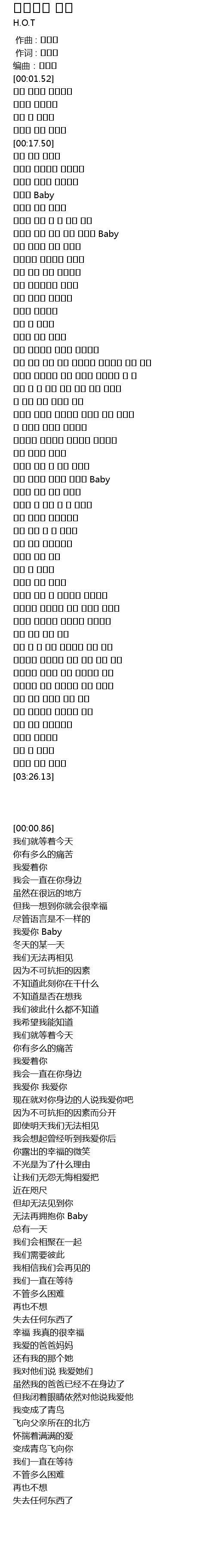 | [01:58.54] | 다신 안을수 없겠죠 아니야 Baby |