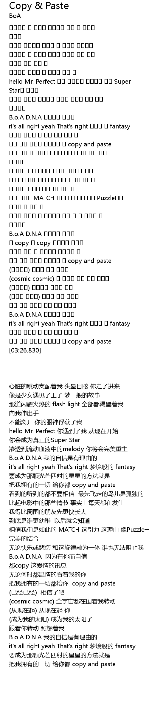 | [03:06.240] | B.o.A D.N.A 이유있는 자부심 |
