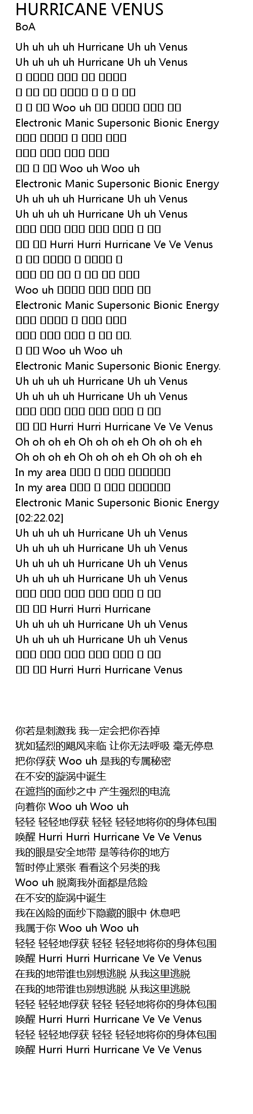 | [02:38.98] | Uh uh uh uh Hurricane Uh uh Venus |