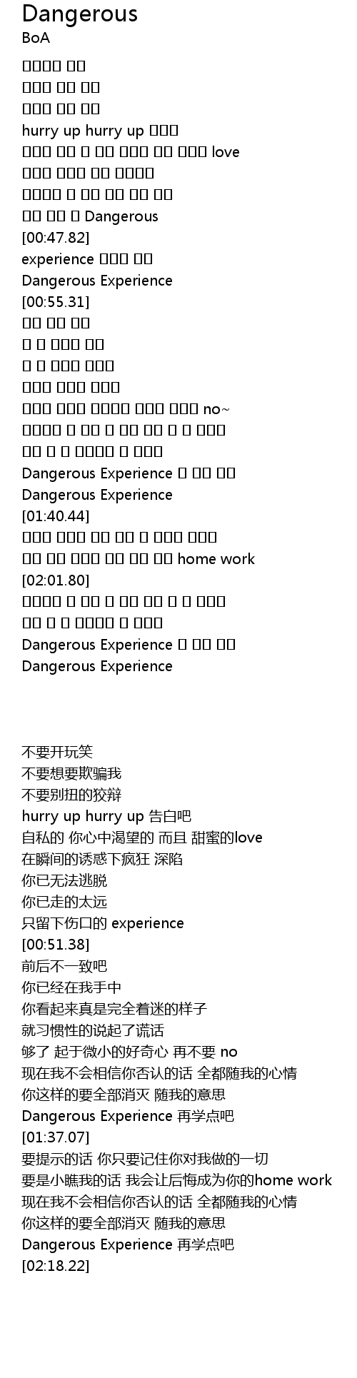 | [02:18.22] | Dangerous Experience |