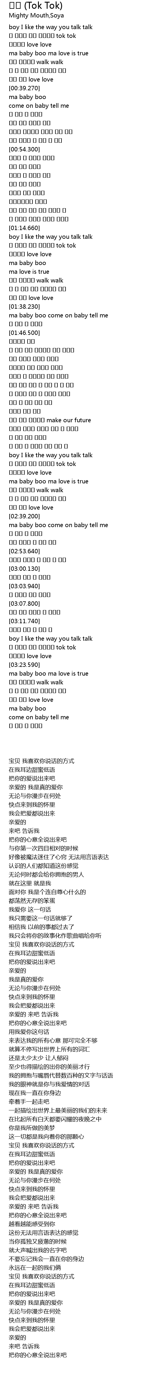 | [03:18.040] | 내 귓가에 쏙쏙 달콤하게 tok tok |