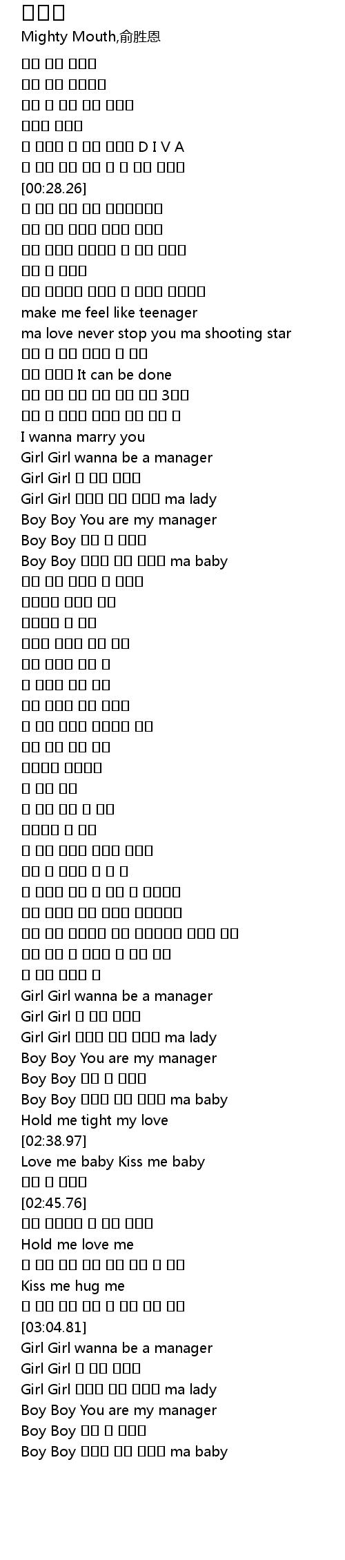 | [02:22.20] | Boy Boy You are my manager |