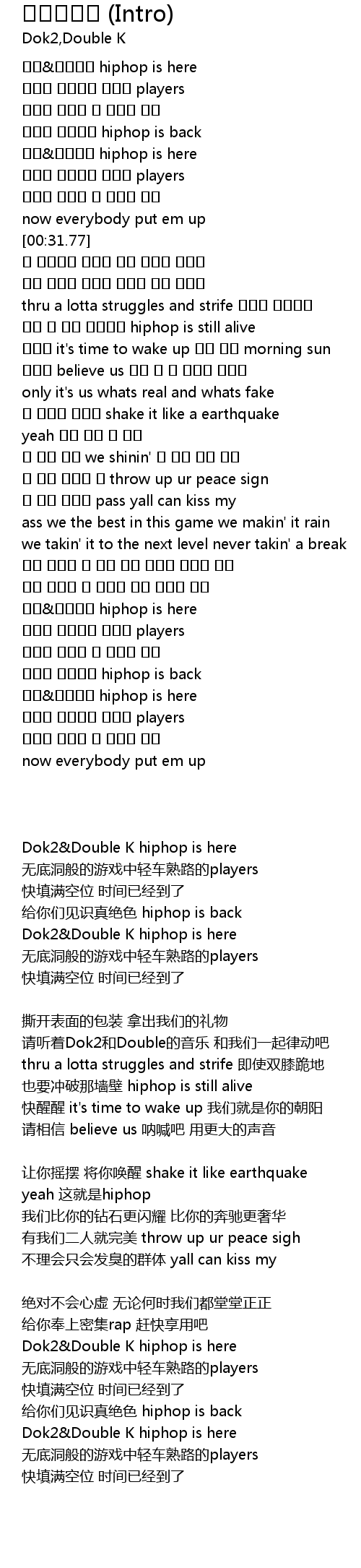 | [00:22.20] | 도끼&더블케이 hiphop is here |
