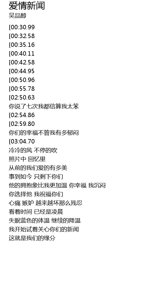 | [02:36.55] | 他的拥抱象比我更加温 你幸福 我沉闷 |
