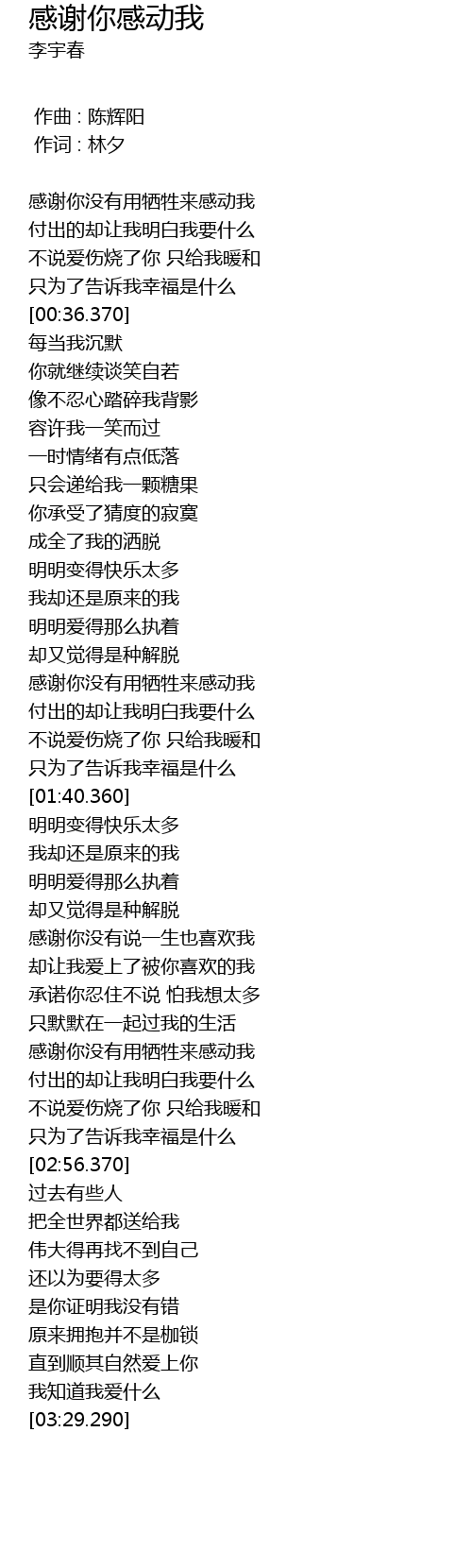 | [02:31.700] | gan xie ni mei you yong xi sheng lai gan dong wo |
