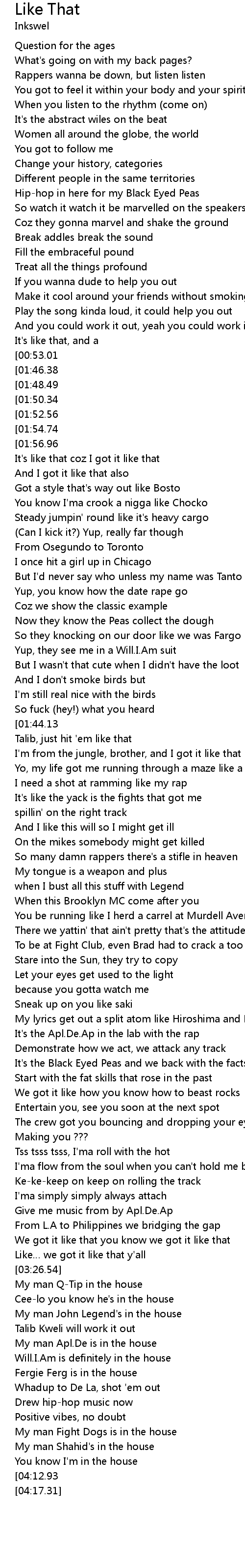 | [04:15.04][04:12.93][04:11.04] | Black Eyed Peas represent sellin out |