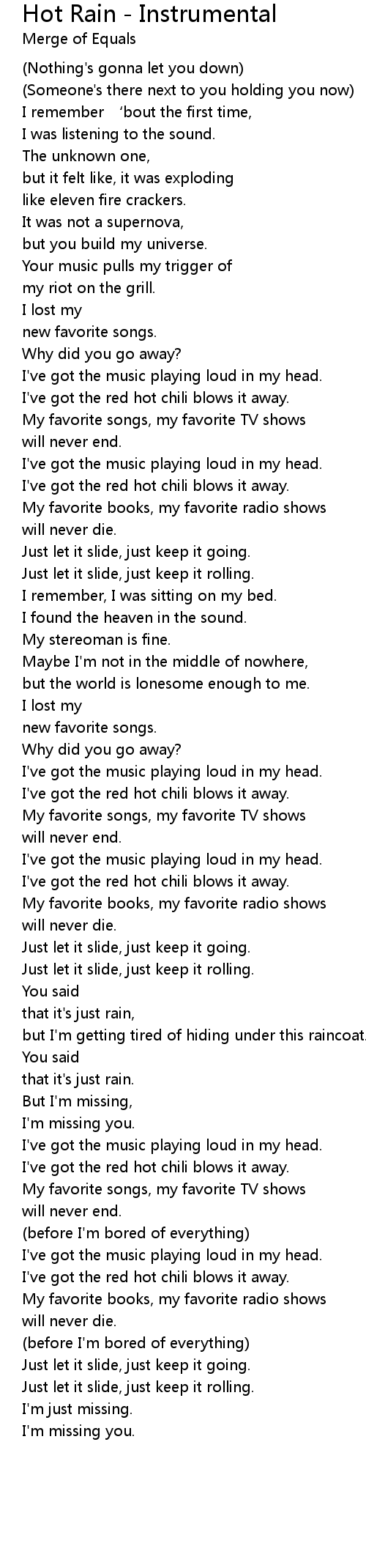 | Song | Hot Rain - Instrumental |