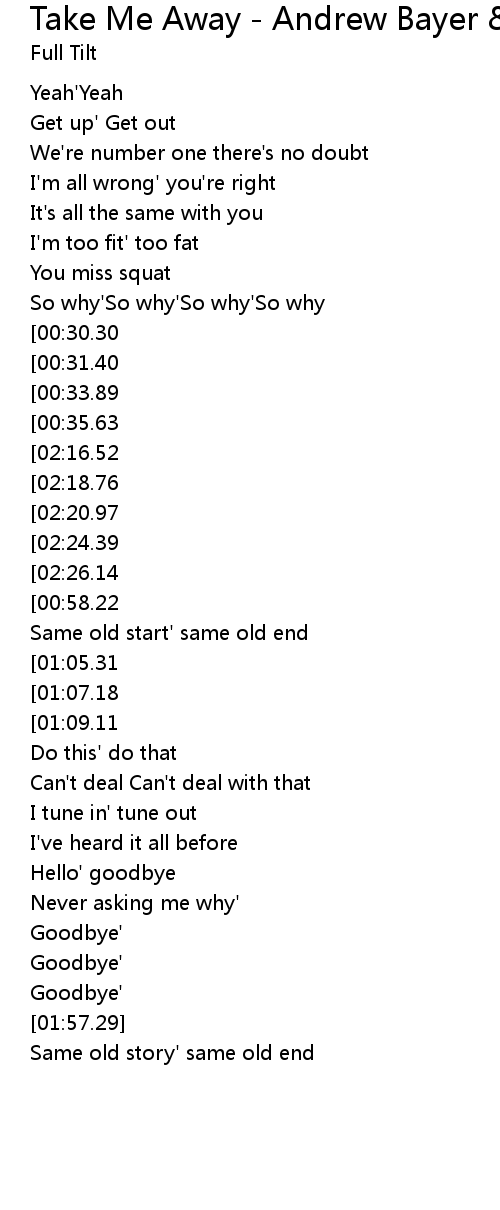 [02:35.80][02:20.97][01:39.00][00:42.44] Hey' take me away