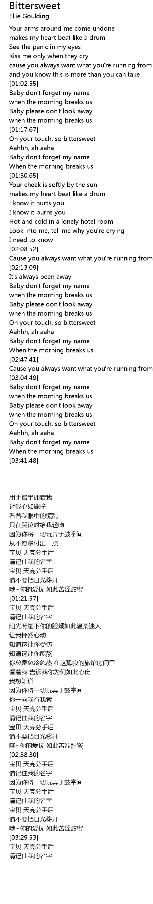Oh your touch, so bittersweet |
