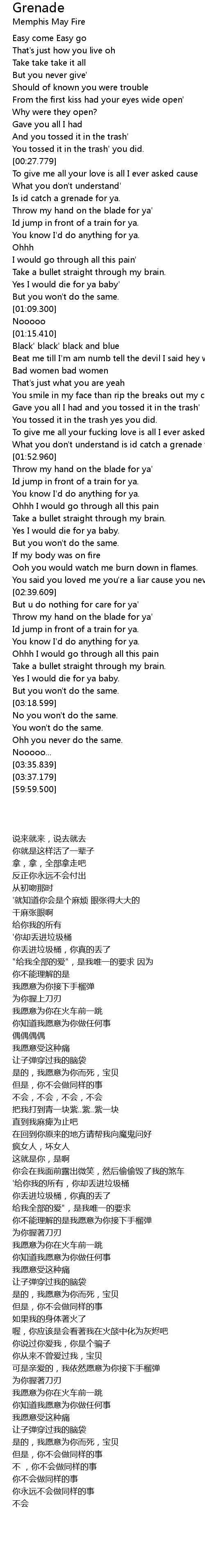 | [01:47.390] | What you don' t understand is id catch a grenade for ya. |