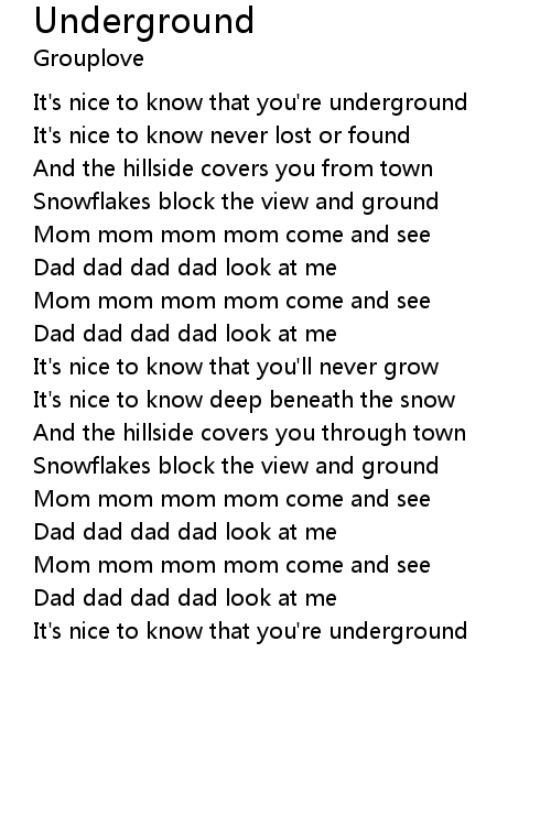 It's nice to know that you're underground |