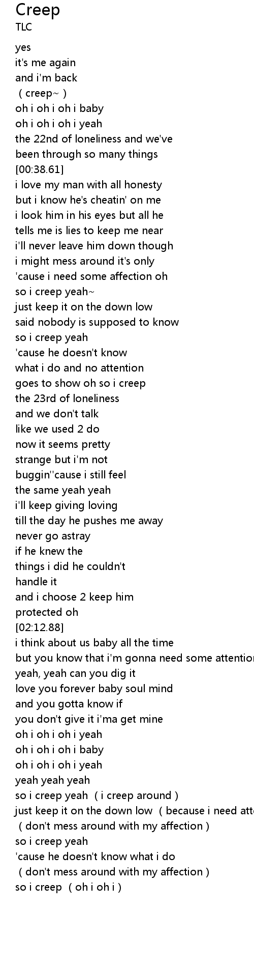 | [03:25.85] | so i creep yeah (i creep around) |
