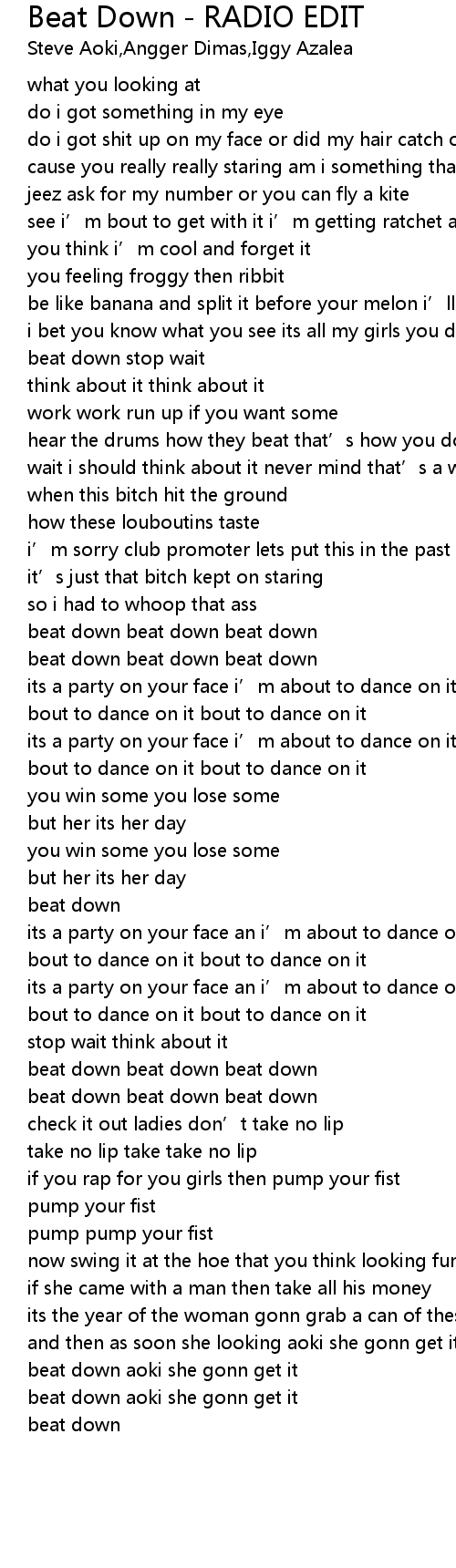 | Song | Beat Down - RADIO EDIT |