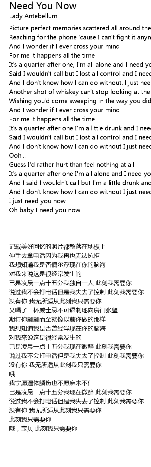 And I said I wouldn't call but I'm a little drunk and I need you now |