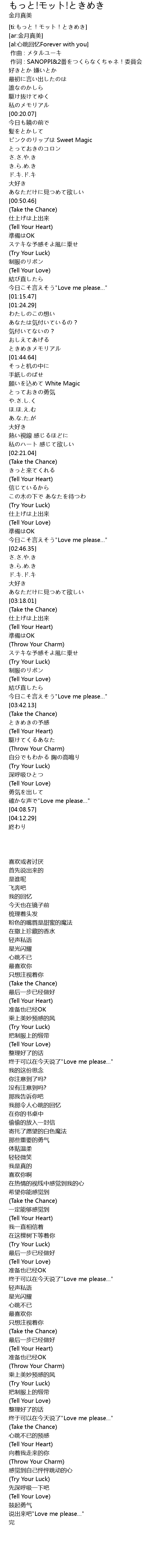 | [02:40.02] | 今日こそ言えそう"Love me please…" |