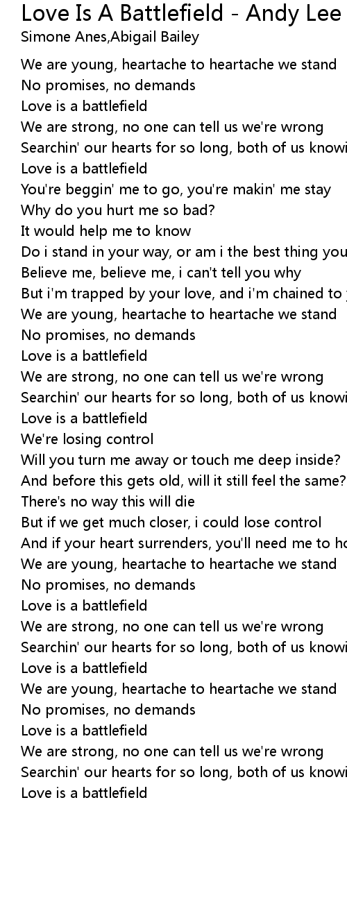 Love Is A Battlefield - Andy Lee & Graham Sahara Instrumental Remix Lyrics