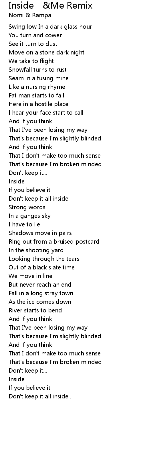 Inside - &Me Remix Lyrics