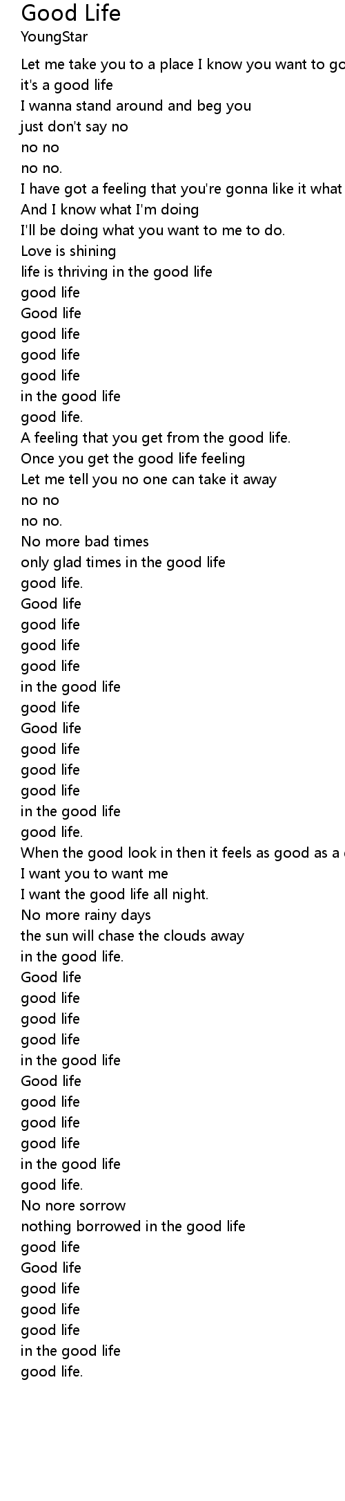 Good Life Lyrics