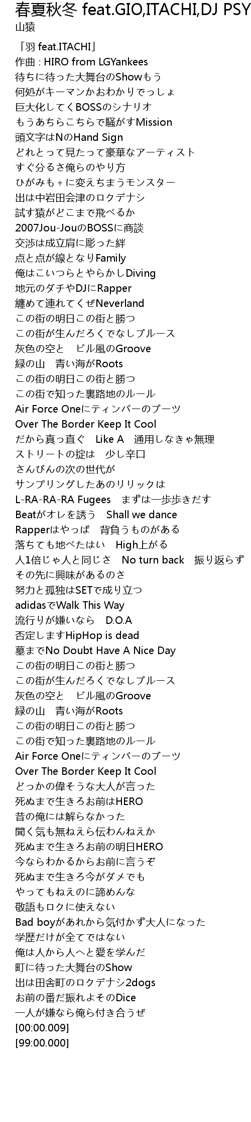| Song | 春夏秋冬 feat.GIO,ITACHI,DJ PSYCHO from PURPLE REVEL |
