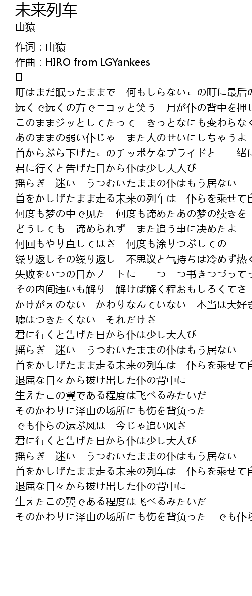 | 首をかしげたまま走る未来の列车は 仆らを乘せて自由に进む | |