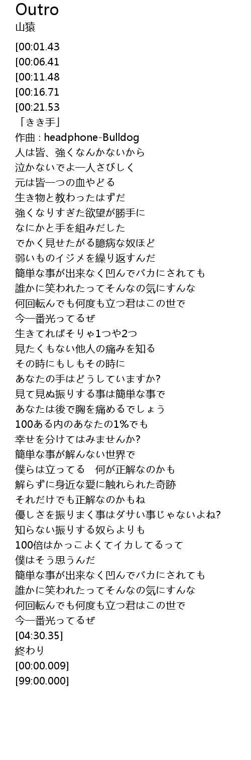 | [04:01.34][00:11.48] | 中指は誰かに指すものじゃない |