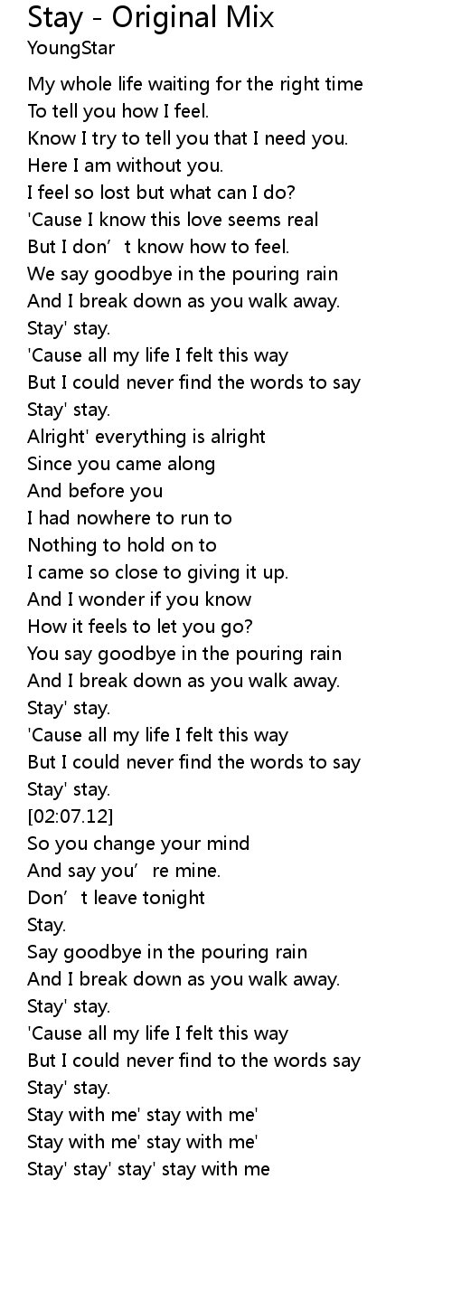 | [03:19.66] | Stay' stay' stay' stay with me |