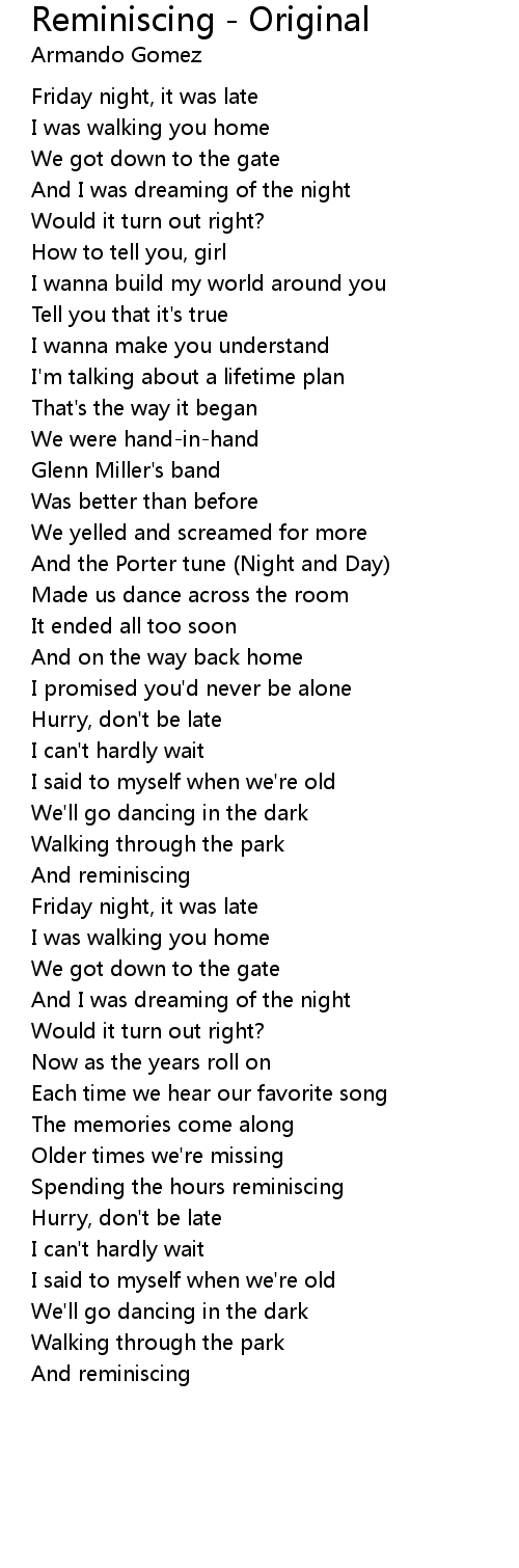And reminiscing |