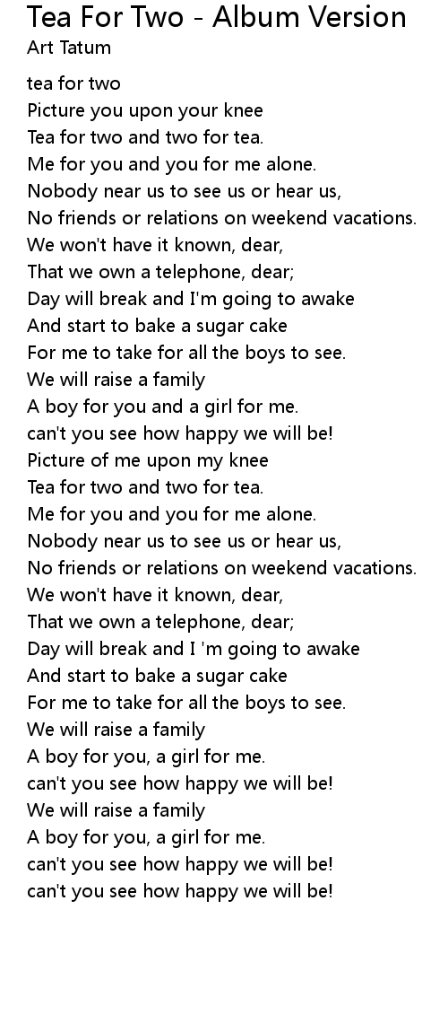 Tea for two and two for tea. |