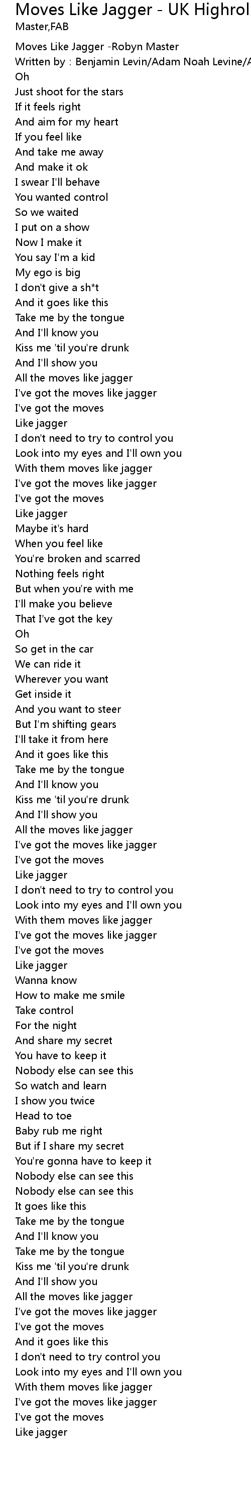 | [00:01.298] | Moves Like Jagger Robyn Master |