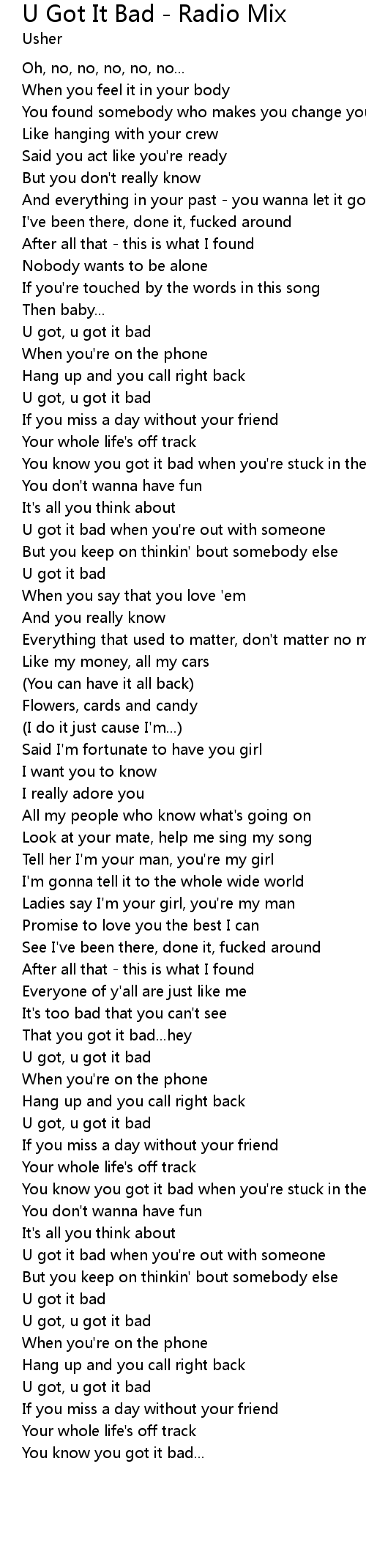U got, u got it bad |
