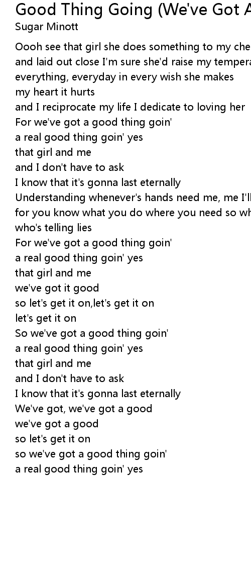 For we've got a good thing goin' |