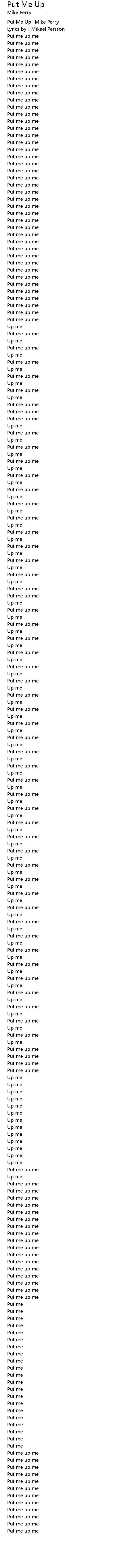 | [00:00.216] | Put Me Up Mike Perry |