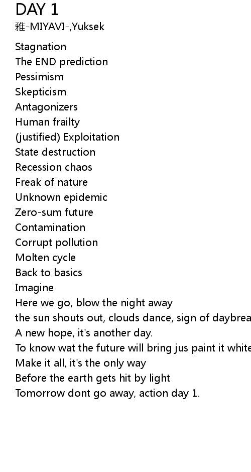 | Tomorrow dont go away, action day 1. |