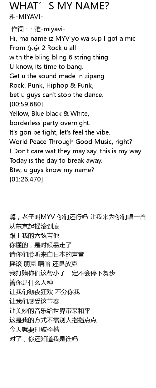| [00:46.290] | Hi, ma name iz MYV yo wa sup I got a mic. |