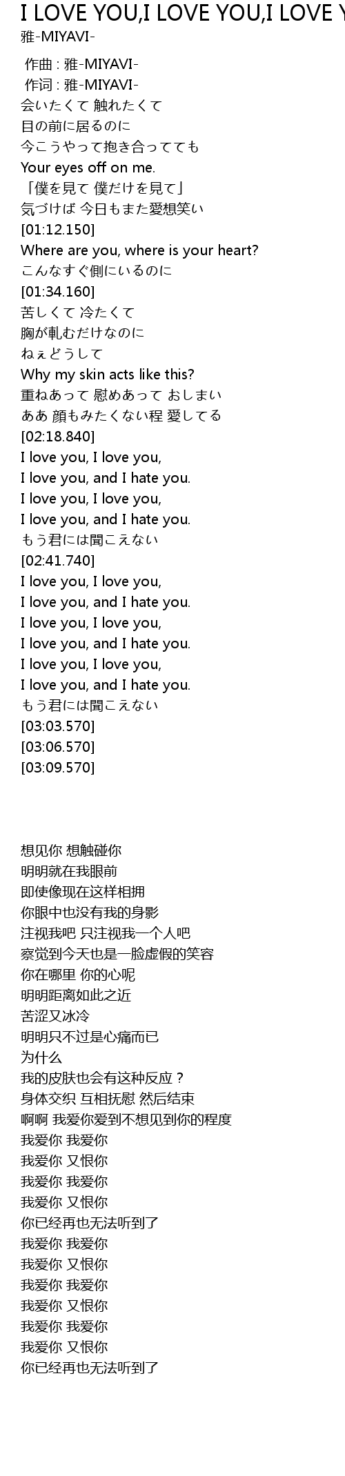 | [02:29.320] | I love you, and I hate you. |