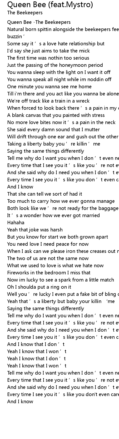 | [00:01.280] | Queen Bee The Beekeepers |