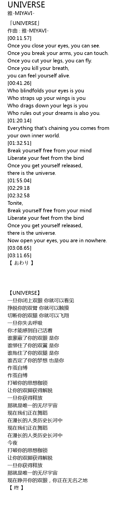 | [03:03.22] | Now open your eyes, you are in nowhere. |