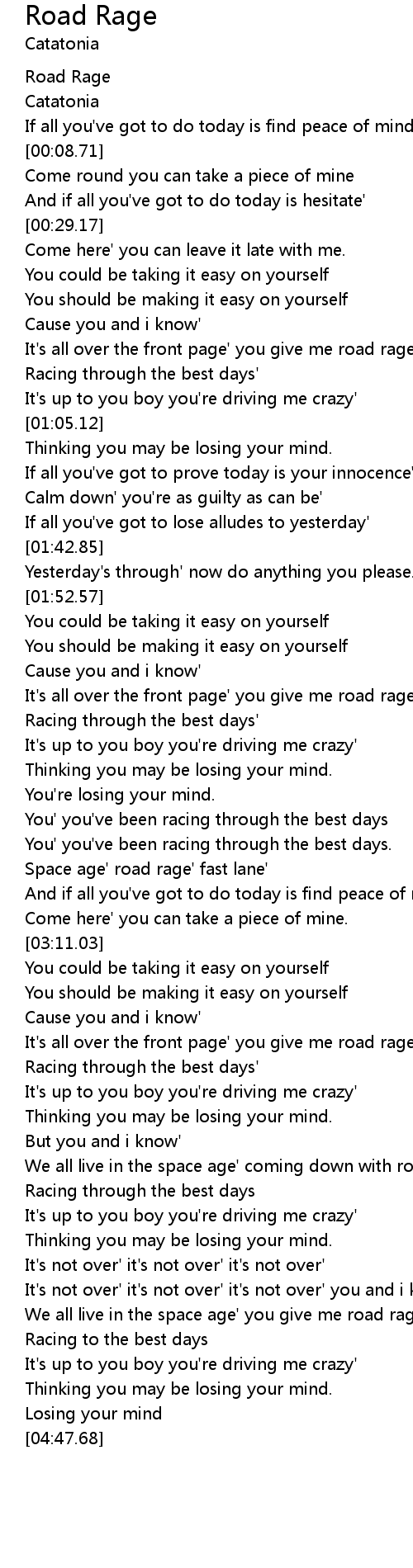 It's all over the front page' you give me road rage' |