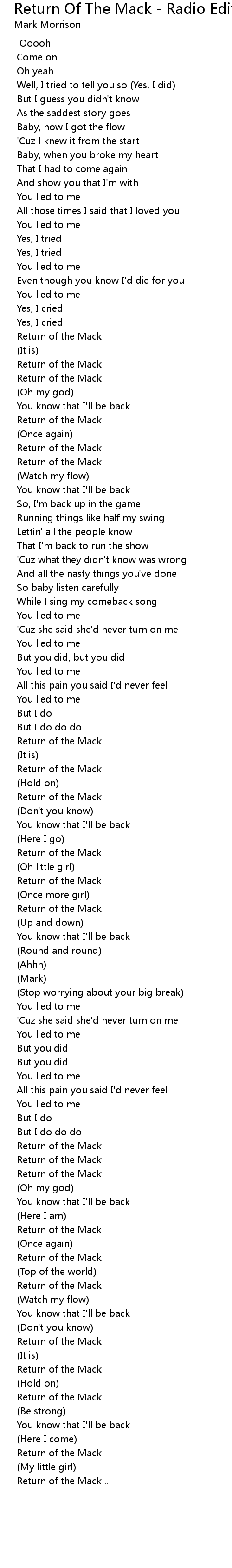 Return Of The Mack - Radio Edit Lyrics
