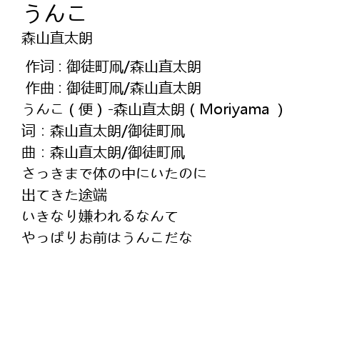| [00:00.00] | うんこ(便)-森山直太朗(Moriyama ) |