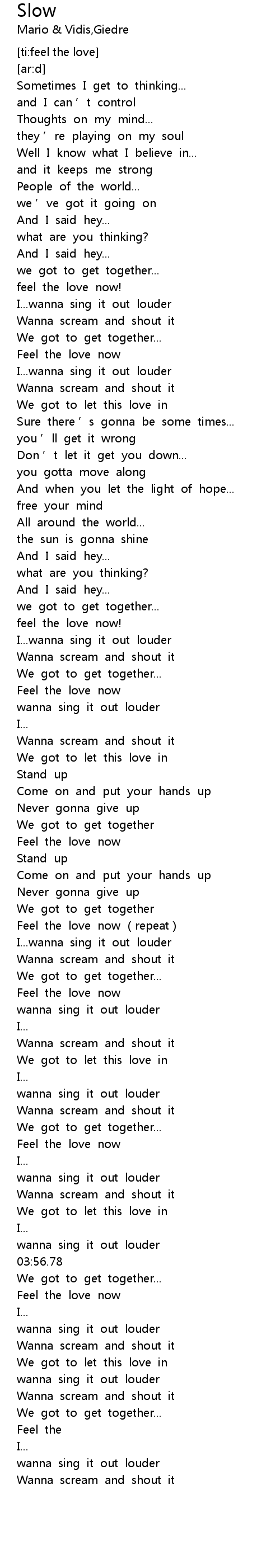 | [03:03.459] | Feel the love now repeat |
