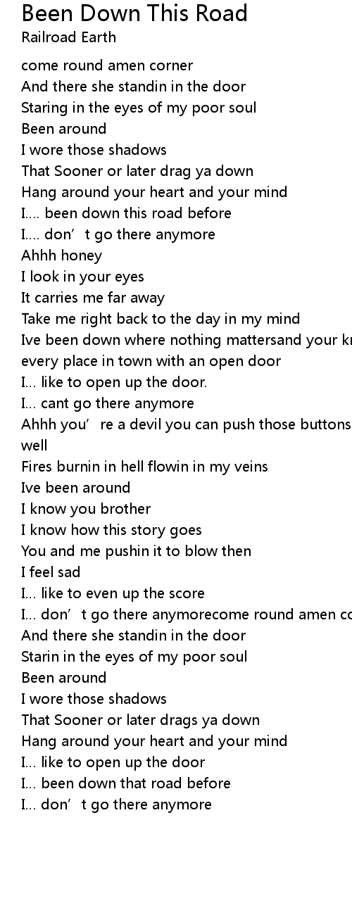 | Song | Been Down This Road |