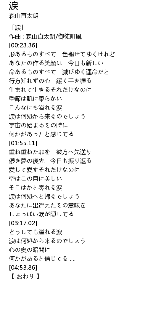 | [00:01.36] | 「涙」 |