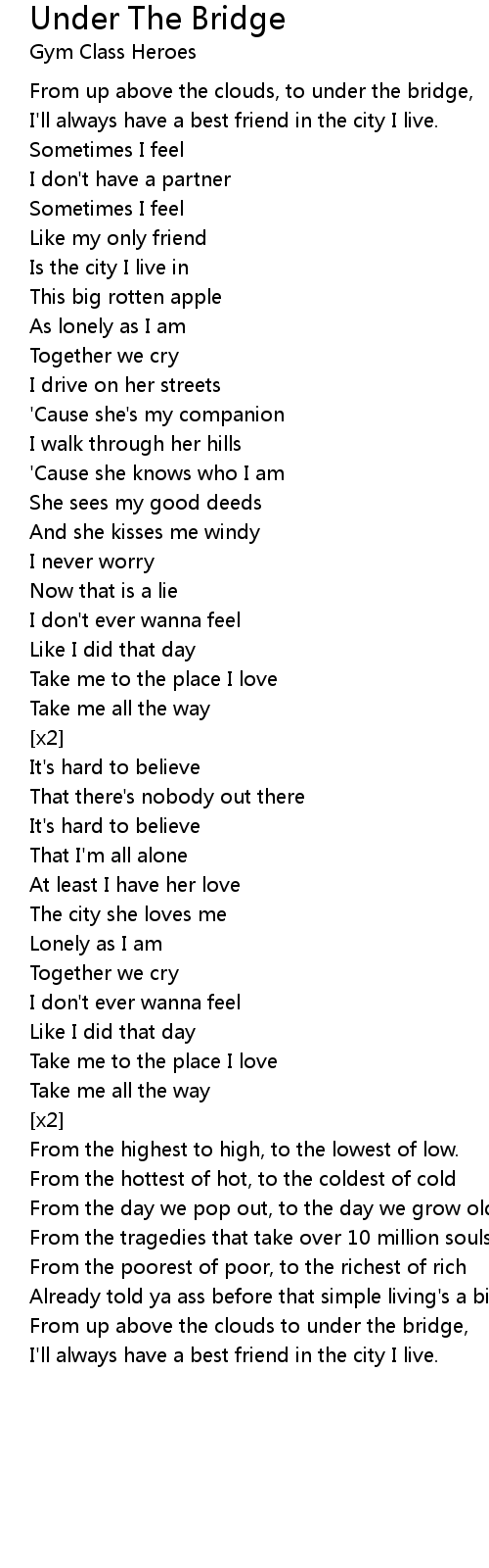 From up above the clouds to under the bridge, |