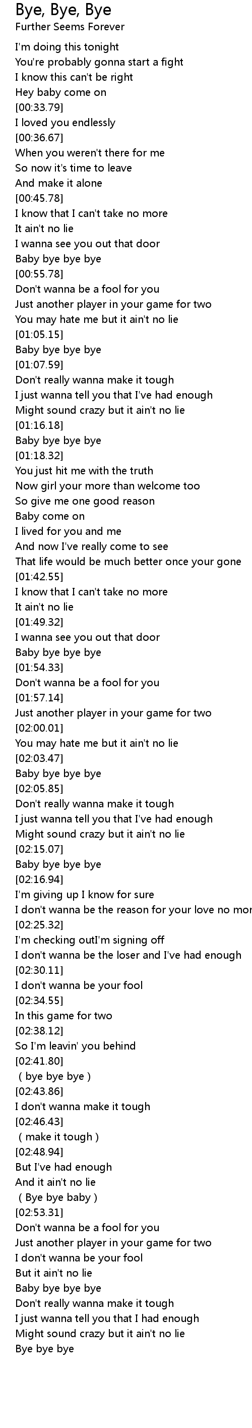 | [02:22.44] | I don't wanna be the reason for your love no more (Bye Bye) |