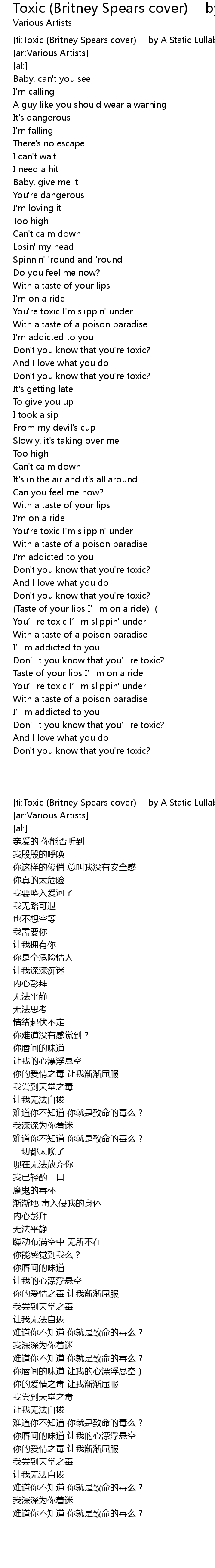 | [ti:Toxic (Britney Spears cover) - by A Static Lullaby] | |