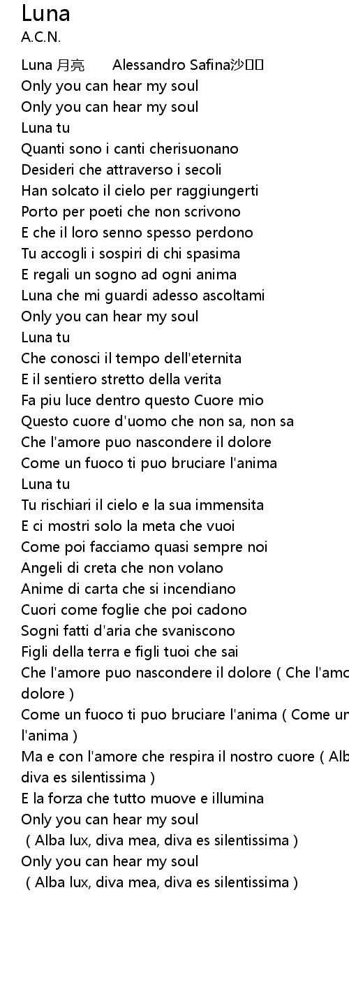 | [00:00.00] | Luna yuè liàng Alessandro Safina shā |