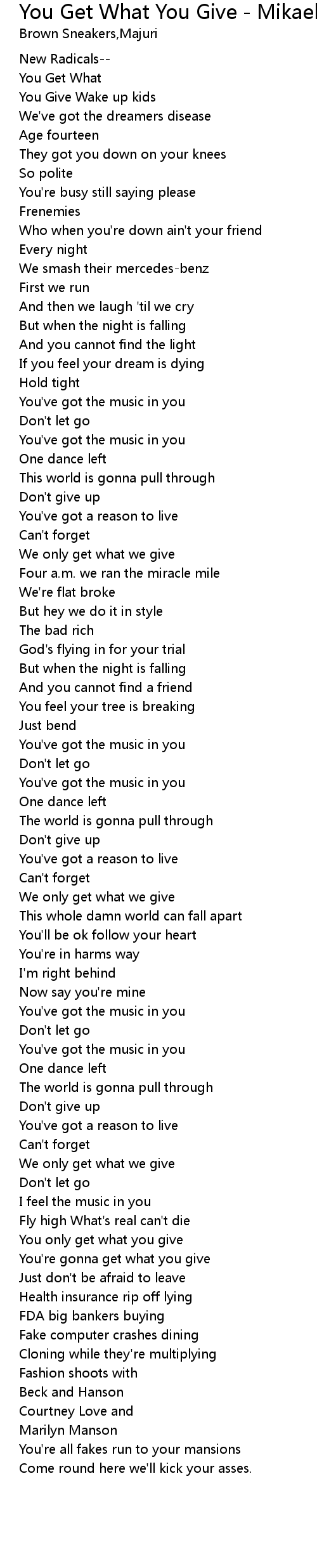 You Get What You Give - Mikael Weermets Remix Lyrics