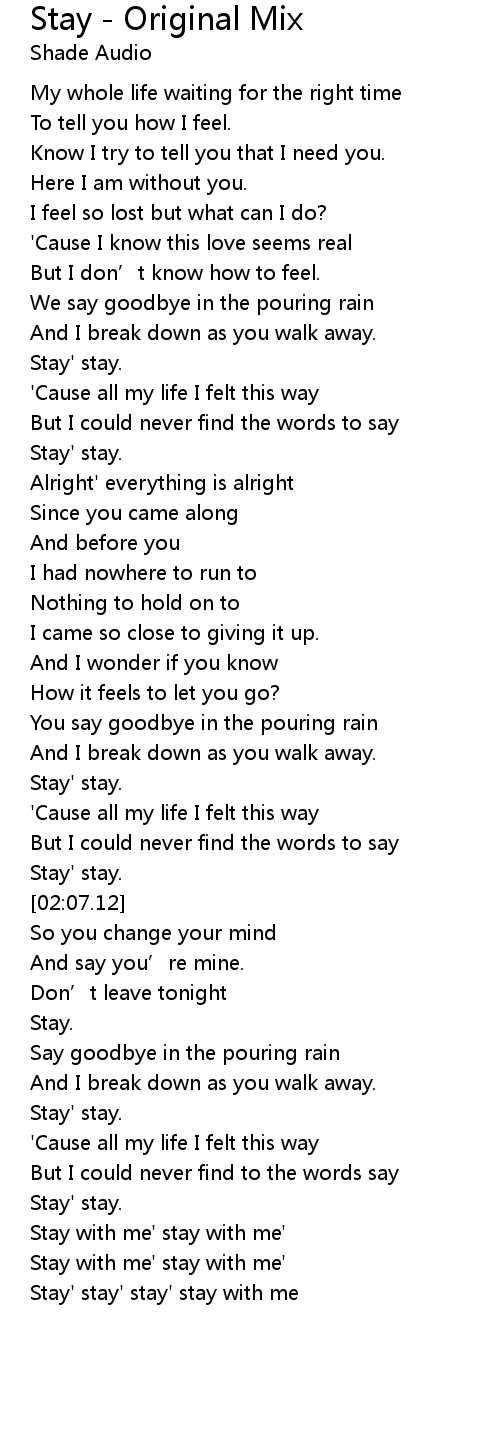 | [03:19.66] | Stay' stay' stay' stay with me |
