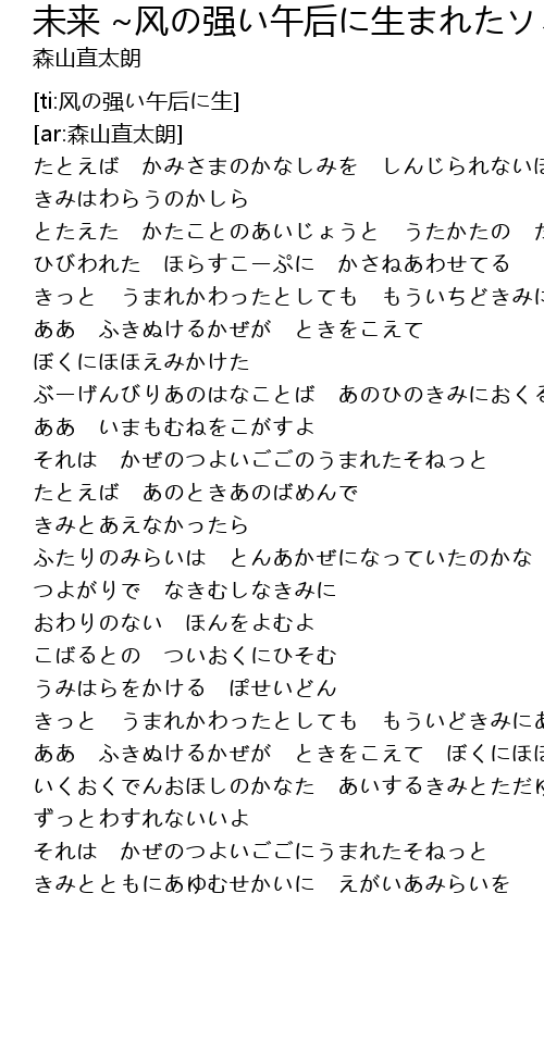 ああ ふきぬけるかぜが ときをこえて ぼくにほほえみかけた |